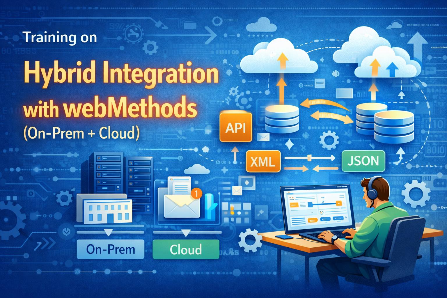 This training on Hybrid Integration with WebMethods will guide participants through designing, implementing, and managing integrations that span on-premises systems and cloud-based applications. It covers both foundational concepts and hands-on implementation strategies using webMethods Integration Server, Cloud Integration capabilities, and API management tools.