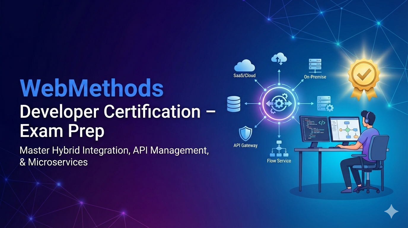 This course focuses on core Integration Server concepts, service development, flow logic, error handling, and best practices, with strong emphasis on exam objectives, common pitfalls, and scenario-based questions.