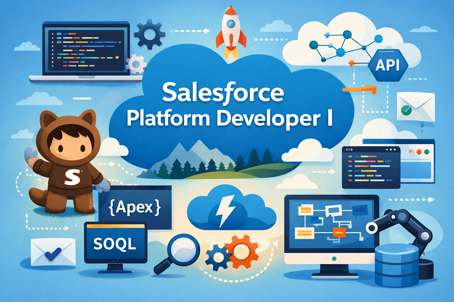 Salesforce Platform Developer I focuses on developing custom applications on the Salesforce platform using Apex, Visualforce, Lightning Web Components (LWC), and declarative automation tools. The platform provides a robust cloud-based environment for building scalable, secure, and multi-tenant applications. This training equips learners with the knowledge to design data models, write business logic, create user interfaces, implement integrations, and prepare for the Salesforce Platform Developer I certification exam.
