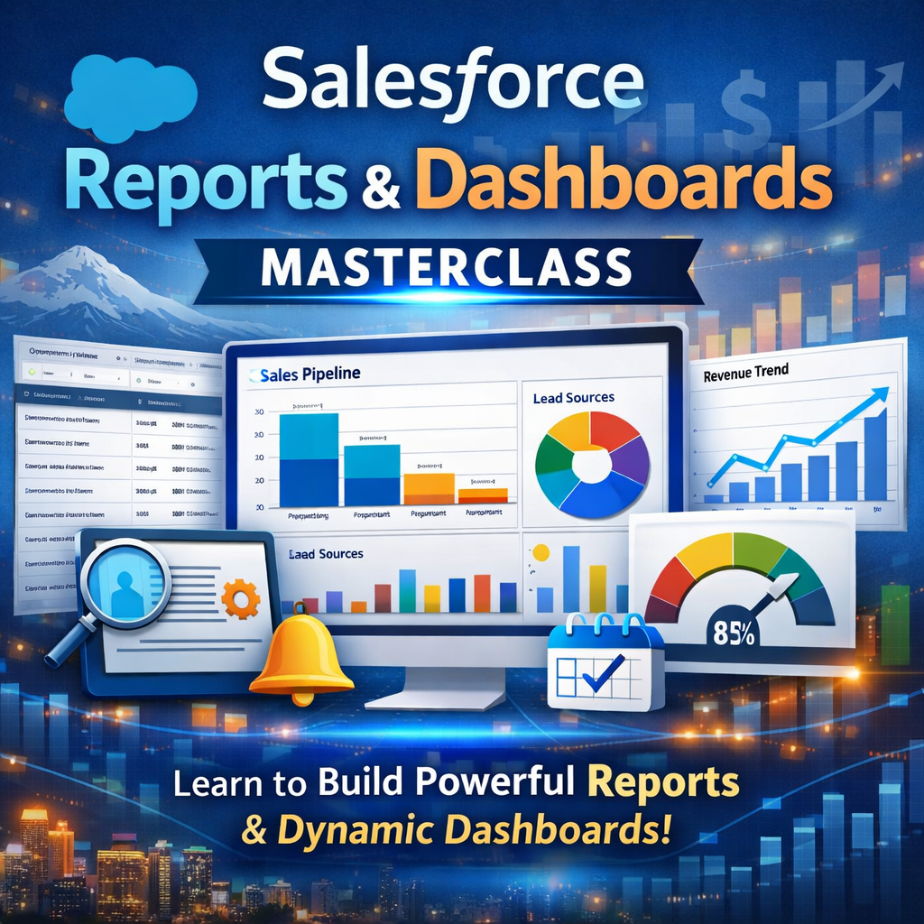 By the end of this Salesforce Reports & Dashboards Masterclass, learners will confidently create advanced reports, build dynamic dashboards, implement security controls, automate insights delivery, and design executive-ready analytics solutions that drive measurable business performance.