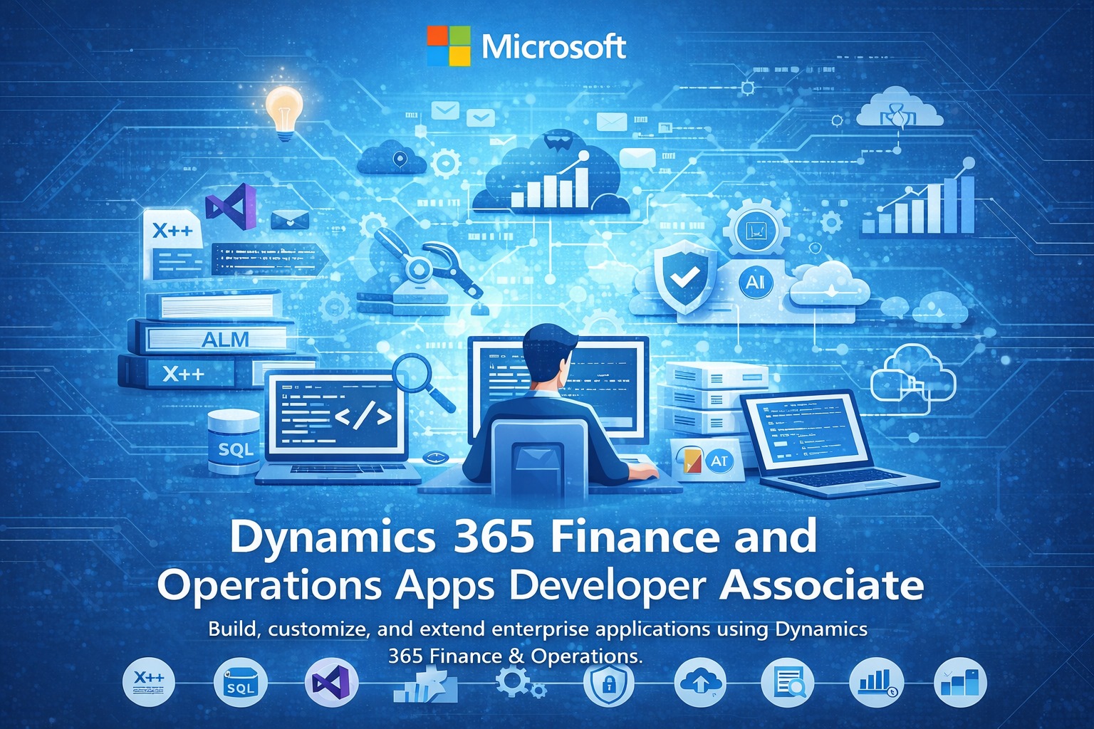 Microsoft Dynamics 365 Finance and Operations Apps Developer Associate focuses on building, customizing, and extending enterprise applications using Dynamics 365 Finance & Operations (D365 F&O). This training covers development concepts such as X++, Visual Studio integration, data modeling, business logic implementation, integrations, and performance optimization. It enables developers to create scalable, secure, and efficient ERP solutions aligned with business needs.
