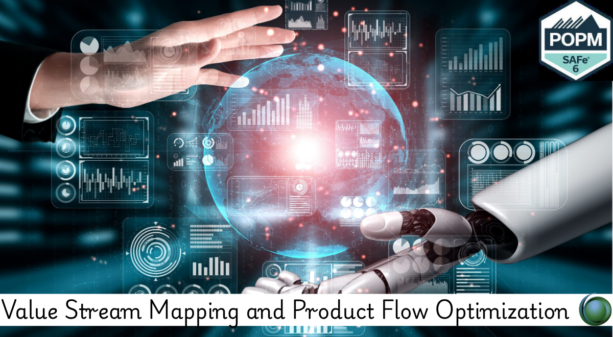 Value Stream Mapping (VSM) and Product Flow Optimization are essential practices within the Scaled Agile Framework (SAFe) that help organizations visualize how value moves from idea to delivery and identify bottlenecks that limit speed and efficiency. VSM provides a holistic view of the end-to-end process, enabling teams to eliminate waste, streamline workflows, and enhance collaboration across functional areas. Product Flow Optimization focuses on improving throughput, reducing delays, balancing workloads, and ensuring continuous, predictable delivery of customer value. Together, these practices create a clear path for organizations to improve operational efficiency, maximize value delivery, and support continuous improvement within Agile Release Trains (ARTs).